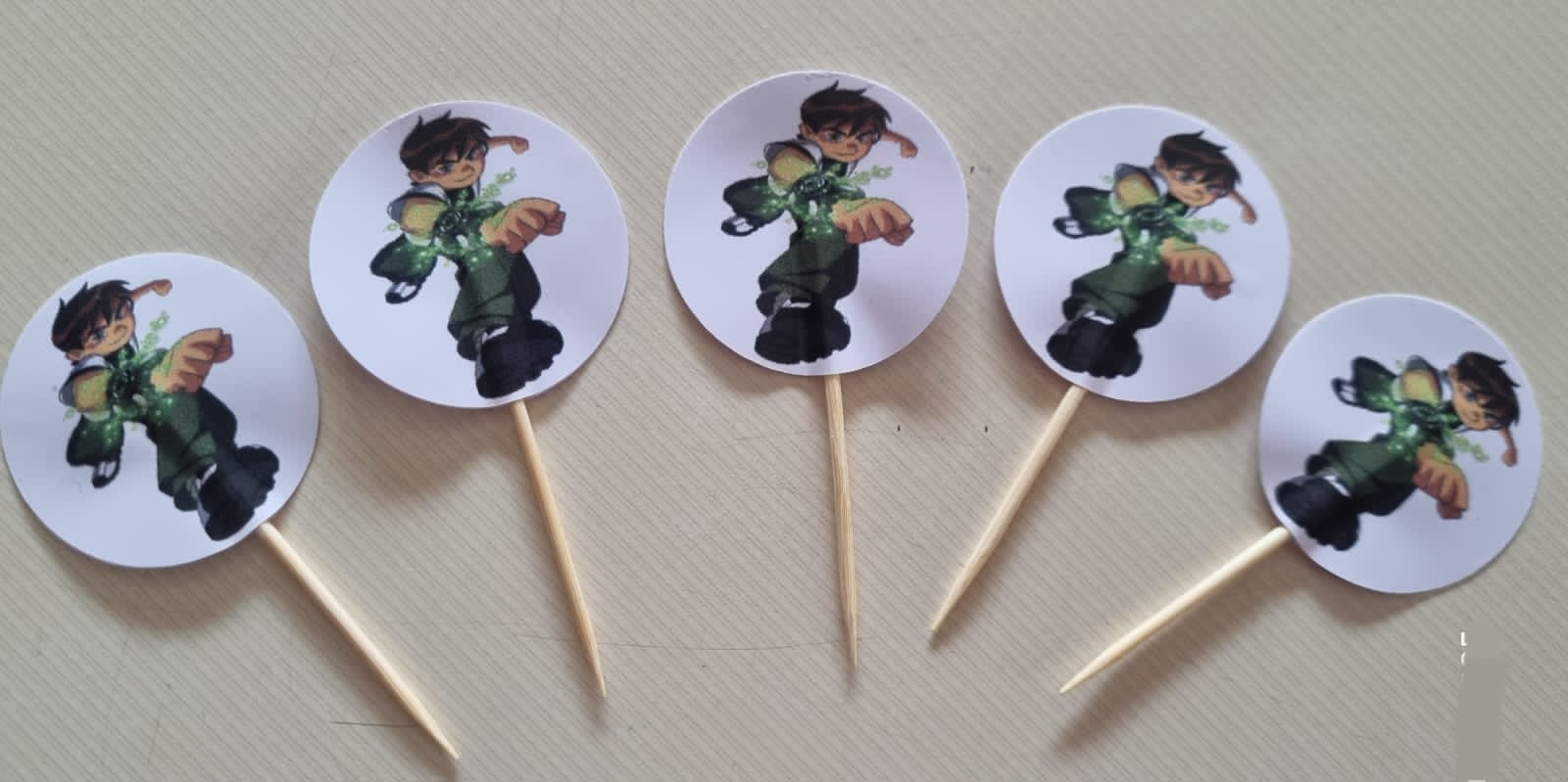 Ben 10 food picks 20’s. 20 Picks per pack. Simply stick into a cup cake, meatball, marshmallow or fruits. Great way to easily decorate cup cakes.