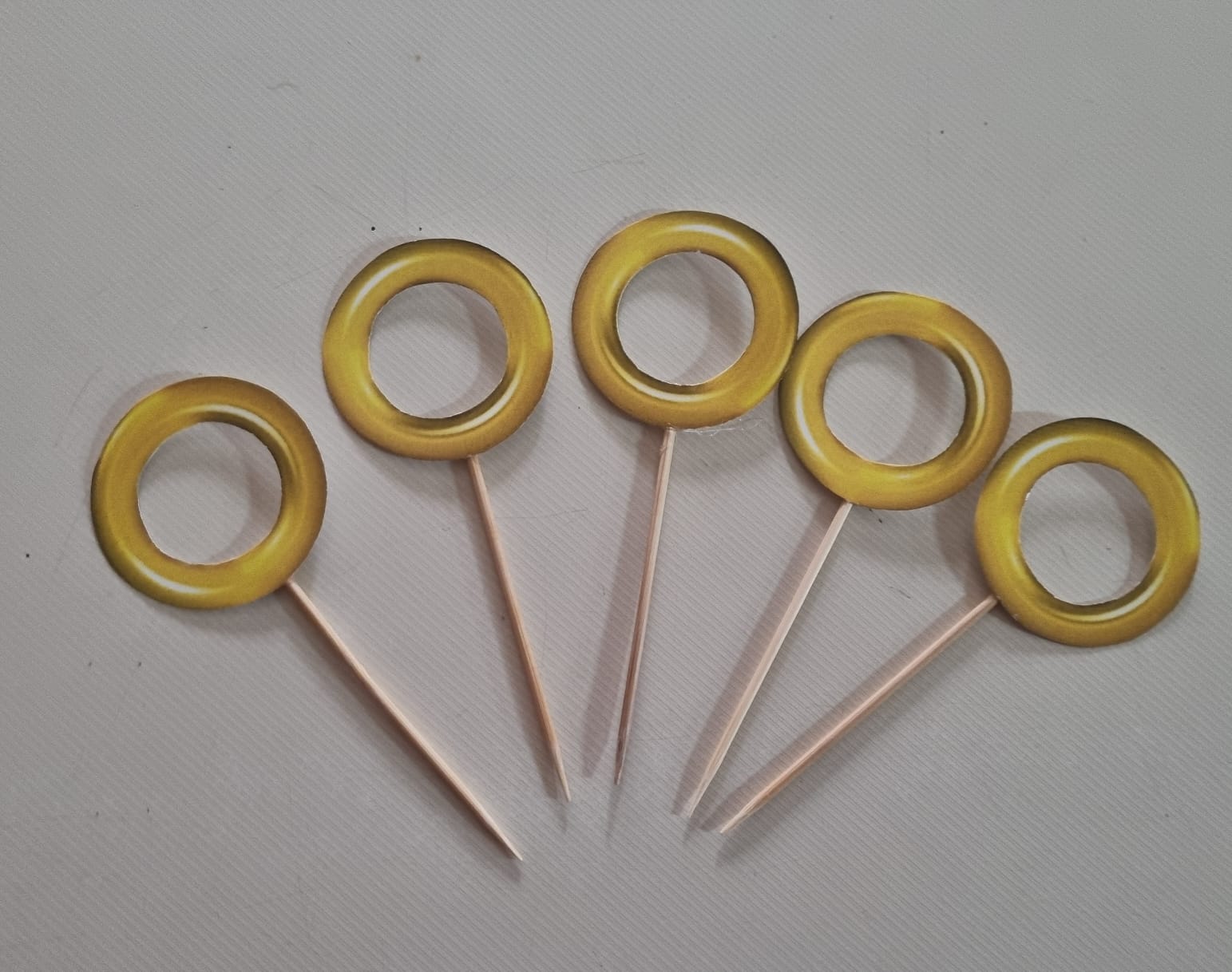 Cardboard Sonic golden rings 5’s 5 Cardboard rings. Perfect addition to Sonic themed cakes/ cup cakes or centre pieces. Stick into marshmallows or donuts.