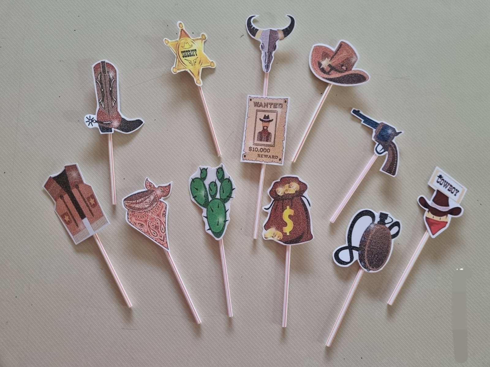 Cowboy theme food picks 12’s. cardstock toppers, not edible. Simply stick into a cupcake or other edible treats. Perfect addition to a cowboy or wild west theme party.