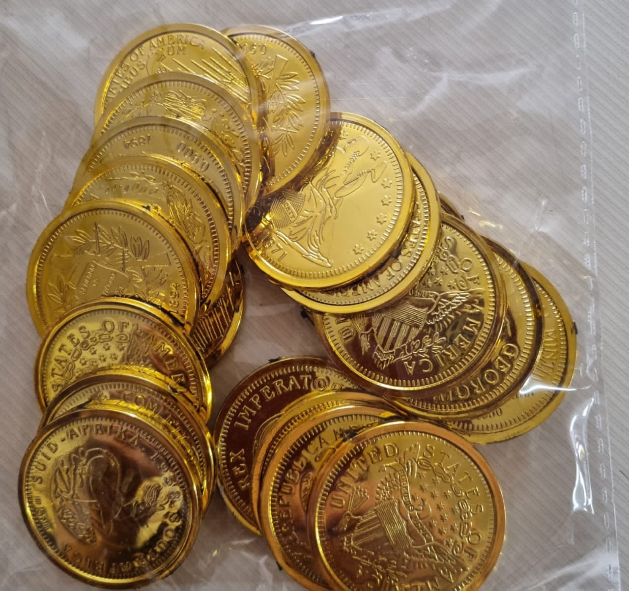 Plastic gold coins 3.5cm 20’s. 20 Plastic gold coins per pack. Measures 3.5 cm in diameter. Great with a pirate, casino or police or crooks themed party.
