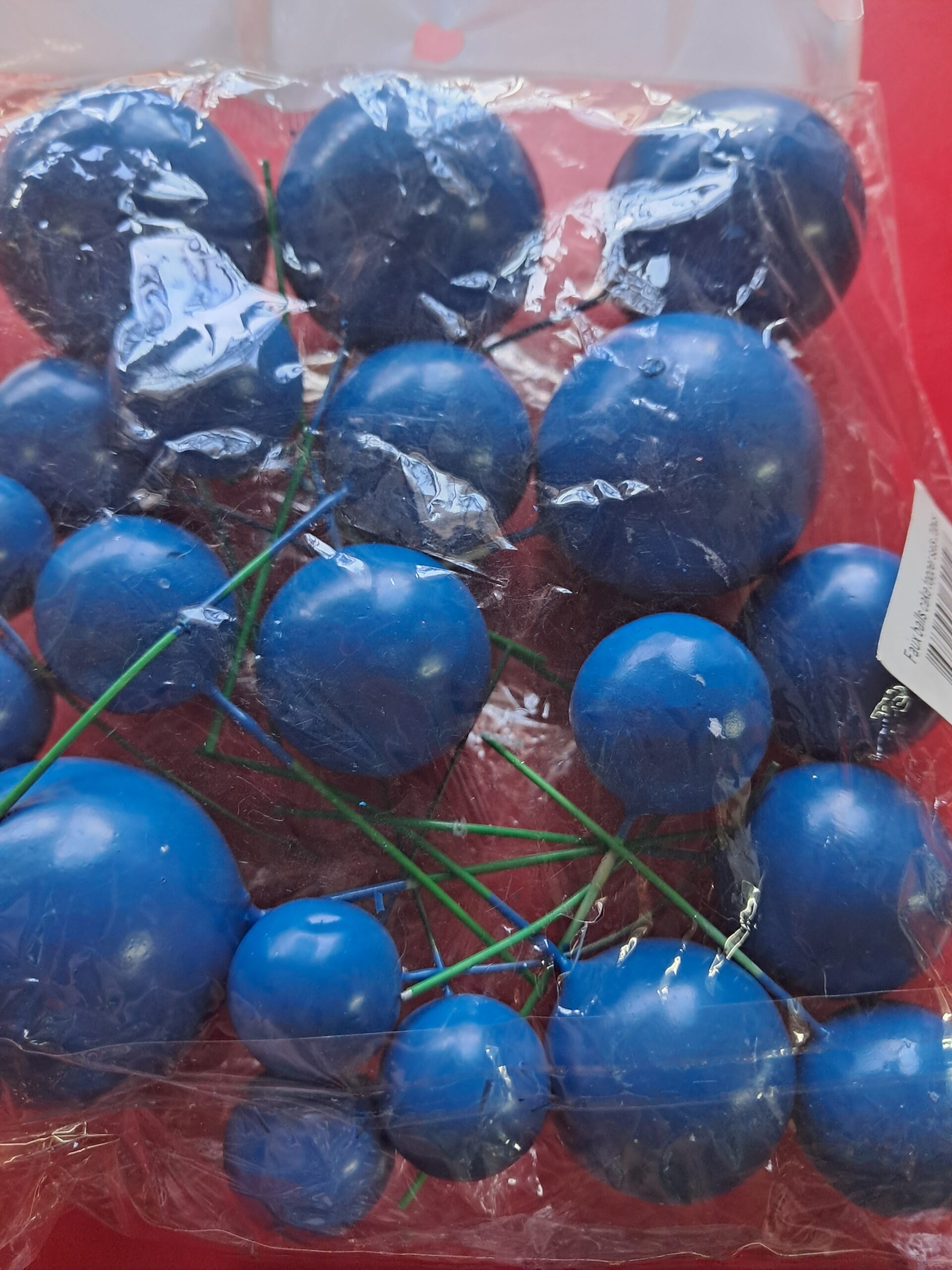 Royal blue faux cake balls 20’s. Approximately 20 faux balls, assorted sizes, per pack. Simply stick into your cake or arrangements.