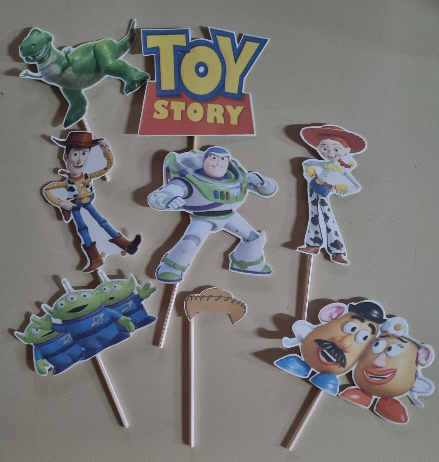 Toy story cardstock cake topper set. Cardstock cake topper set. Simply stick into a cake or cup cakes. Great way to enhance your toy story party.