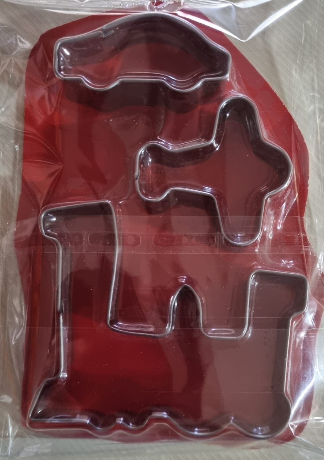 Transport theme cookie cutter set. Metal cutters. Assorted sizes. 1 Car, 1 train and 1 aeroplane.