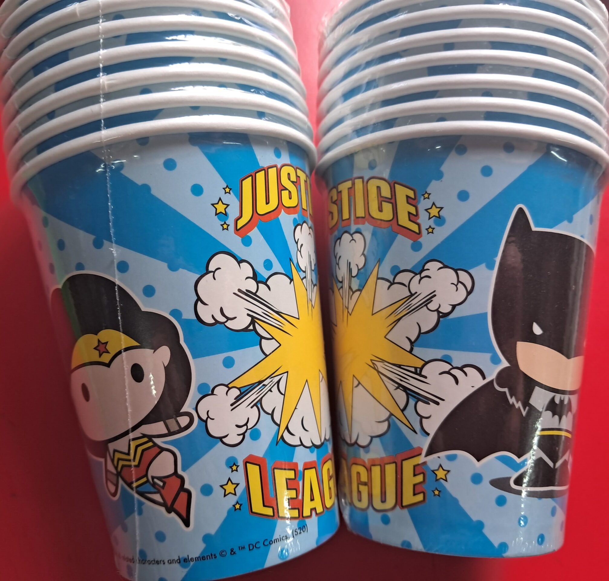 Justice league paper cups 8’s. Perfect with a super hero, wonder woman or batman party.