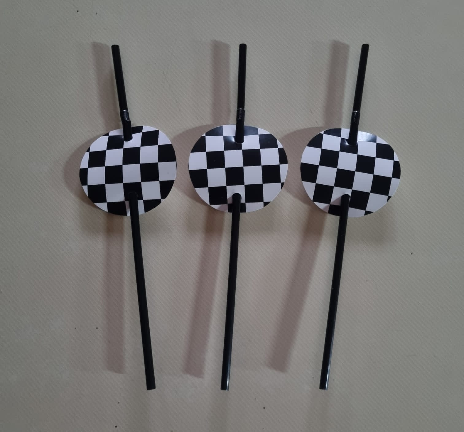 Racing theme straws 8’s. 8 Straws per pack. Perfect with a racing, formula 1, cars, bike or monster truck theme party.