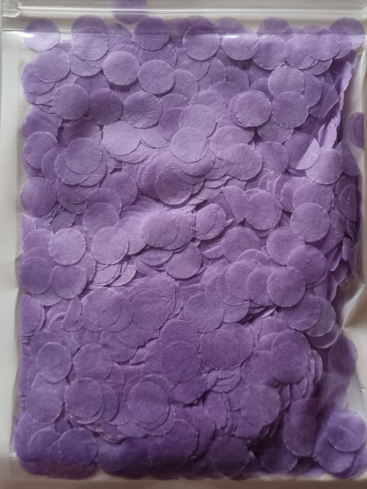 Lilac paper confetti 10 gram. Sold per pack. Add into clear balloons, scatter on your table or add into a pinata. Add a fun touch to your décor.