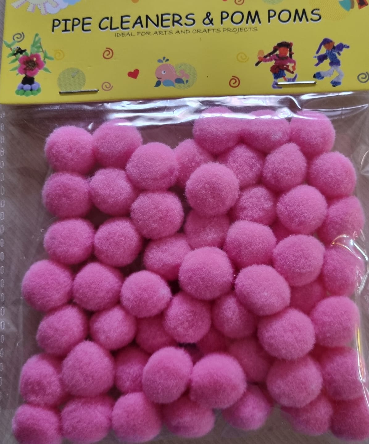Pink pom pom’s 55’s. Great for arts and craft projects. Perfect to make mini bunny tails or clown noses. Approximately 55 per pack.