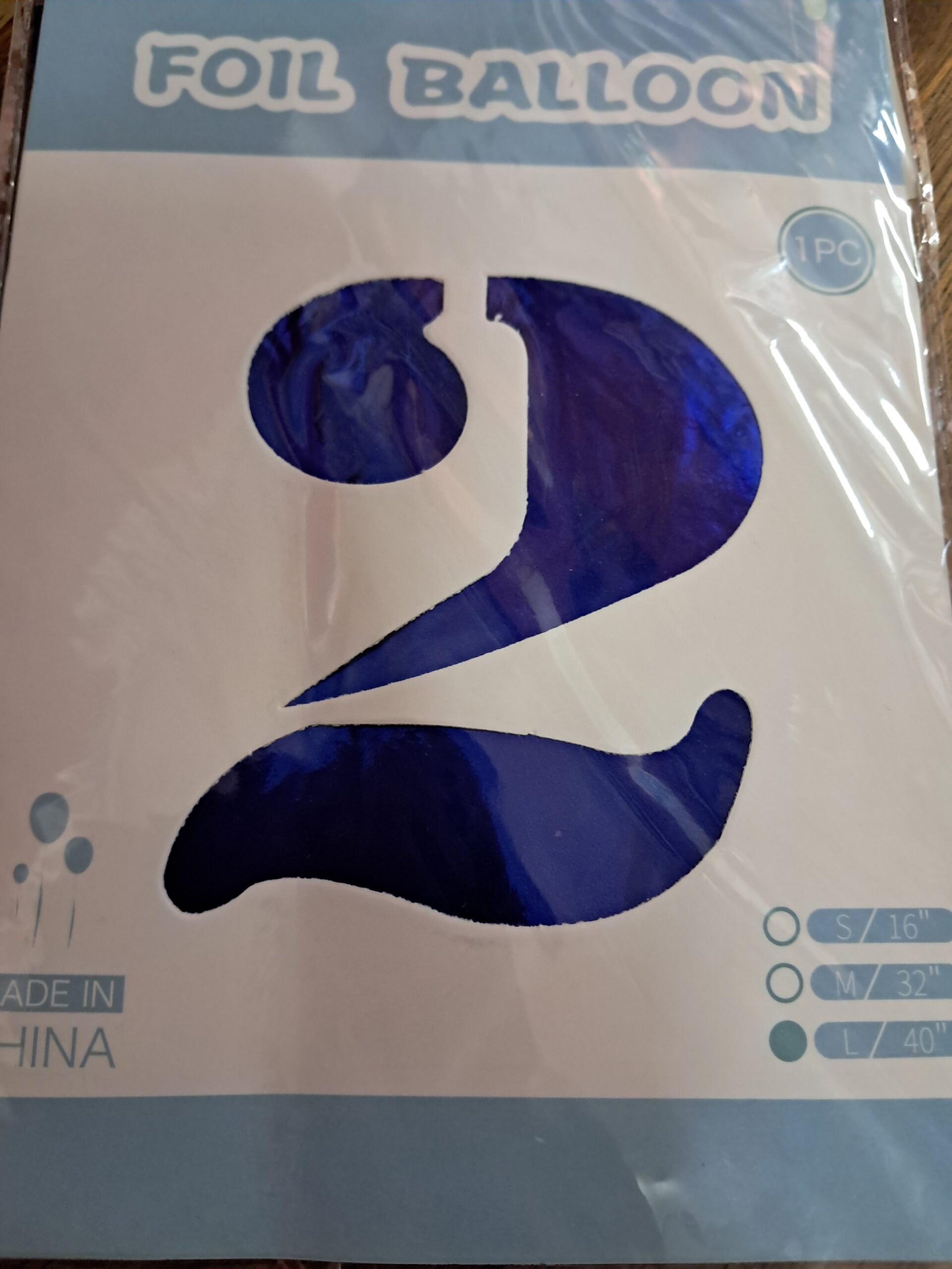 Blue number 2 foil balloon. 105 cm. Fill with helium or normal air. Great for a 2nd birthday.