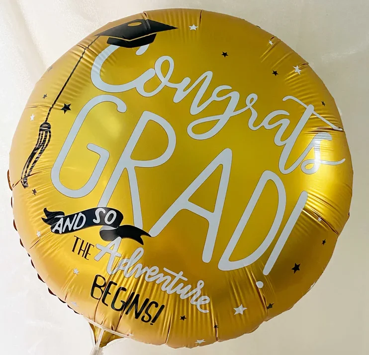 Graduation foil balloon gold. 18 Inch (43cm). Fill with helium or normal air. Great addition to celebrate a graduation.