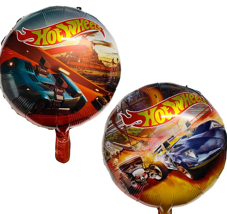 Hot wheels foil balloon. 43cm round. Fill with helium or normal air. Double sided print. 1 Design on one side and the other print on the other side.