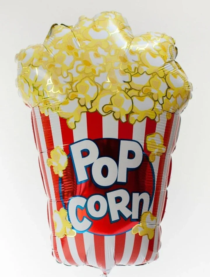 Popcorn themed foil balloon. 1 Per pack. Measures approximately 58 x 42 cm. Fill with helium or normal air. Great with a movie night, circus, carnival or candy land party.