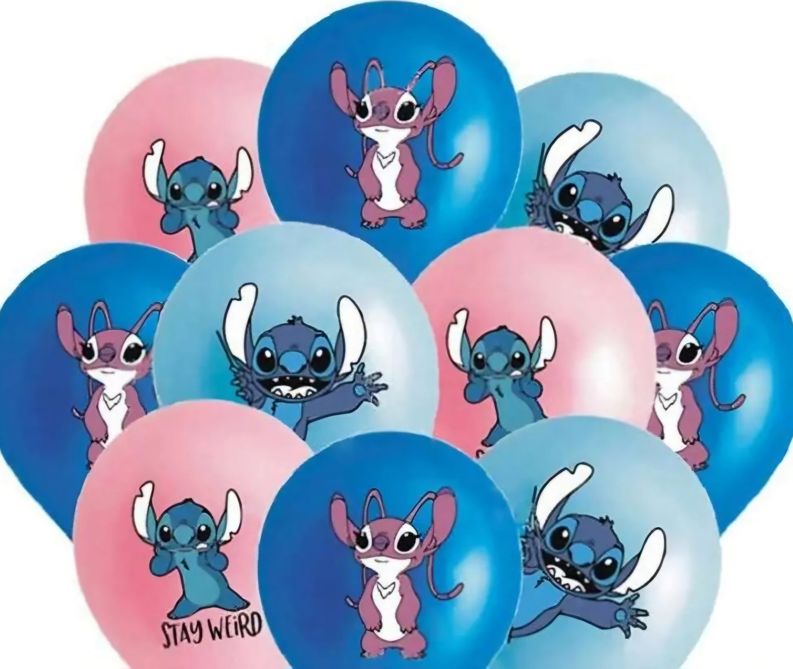 Stitch latex balloons 6’s. 6 Assorted latex balloons. Image is for illustrative purposes and actual colours might differ. Fill with helium or normal air.