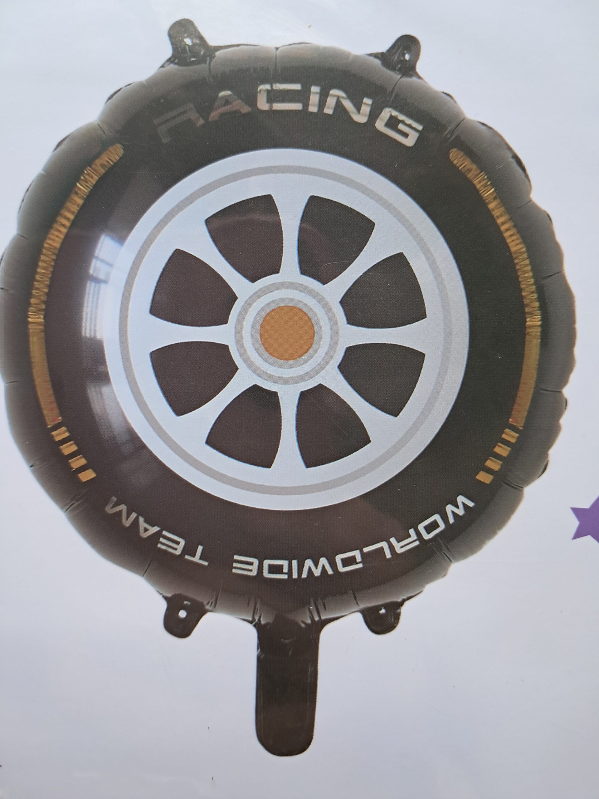 Tyre shape foil balloon 18 inch. 1 Per pack. Sold flat. Perfect with a racing, F1, motorbike, wheels, transport or cars theme party. Inflate with helium or normal air.