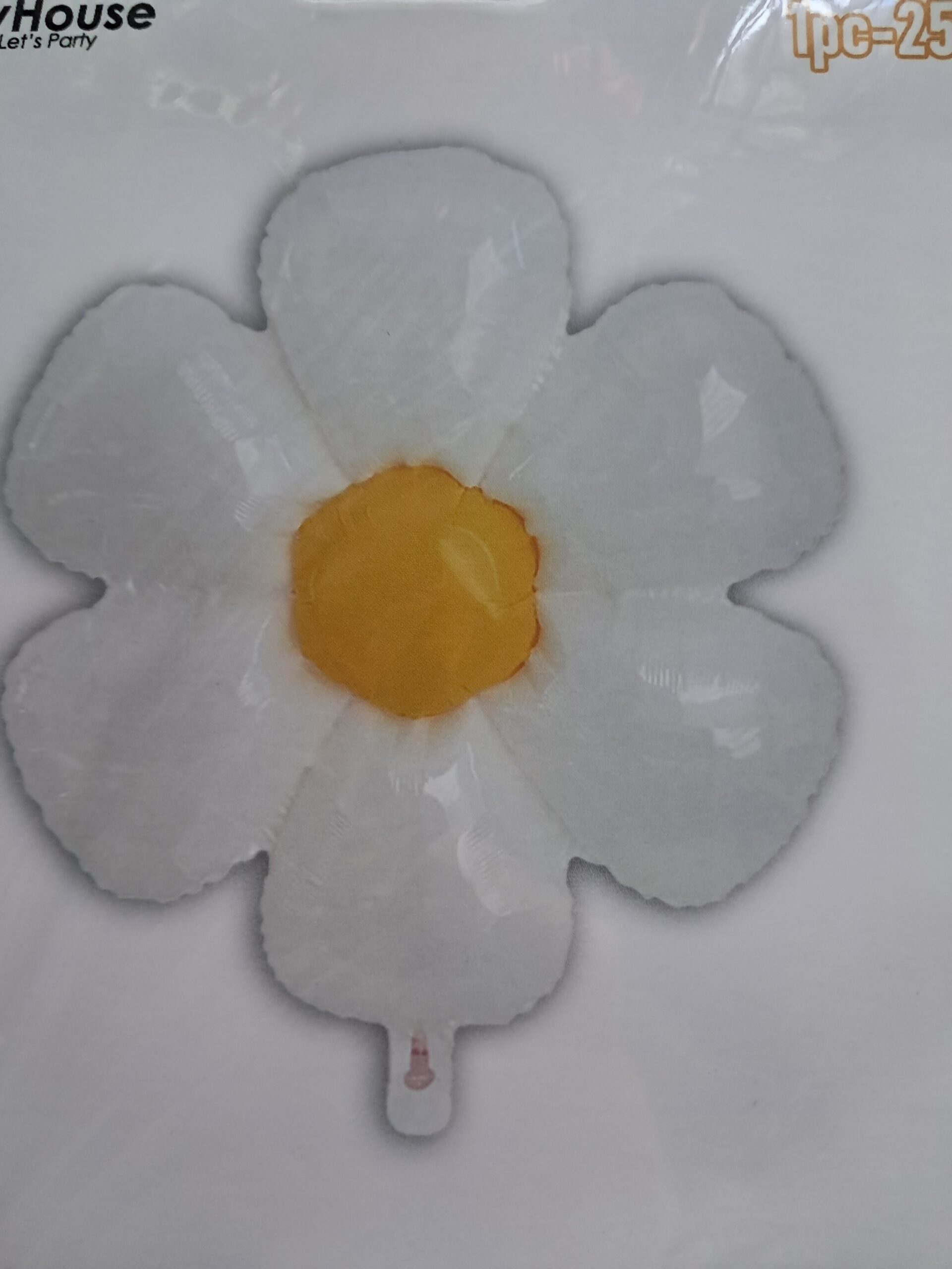 White daisy flower foil balloon 25 inch. Fill with normal air. Great décor item with a daisy, flower, garden, boho, groovy or hippy theme party.
