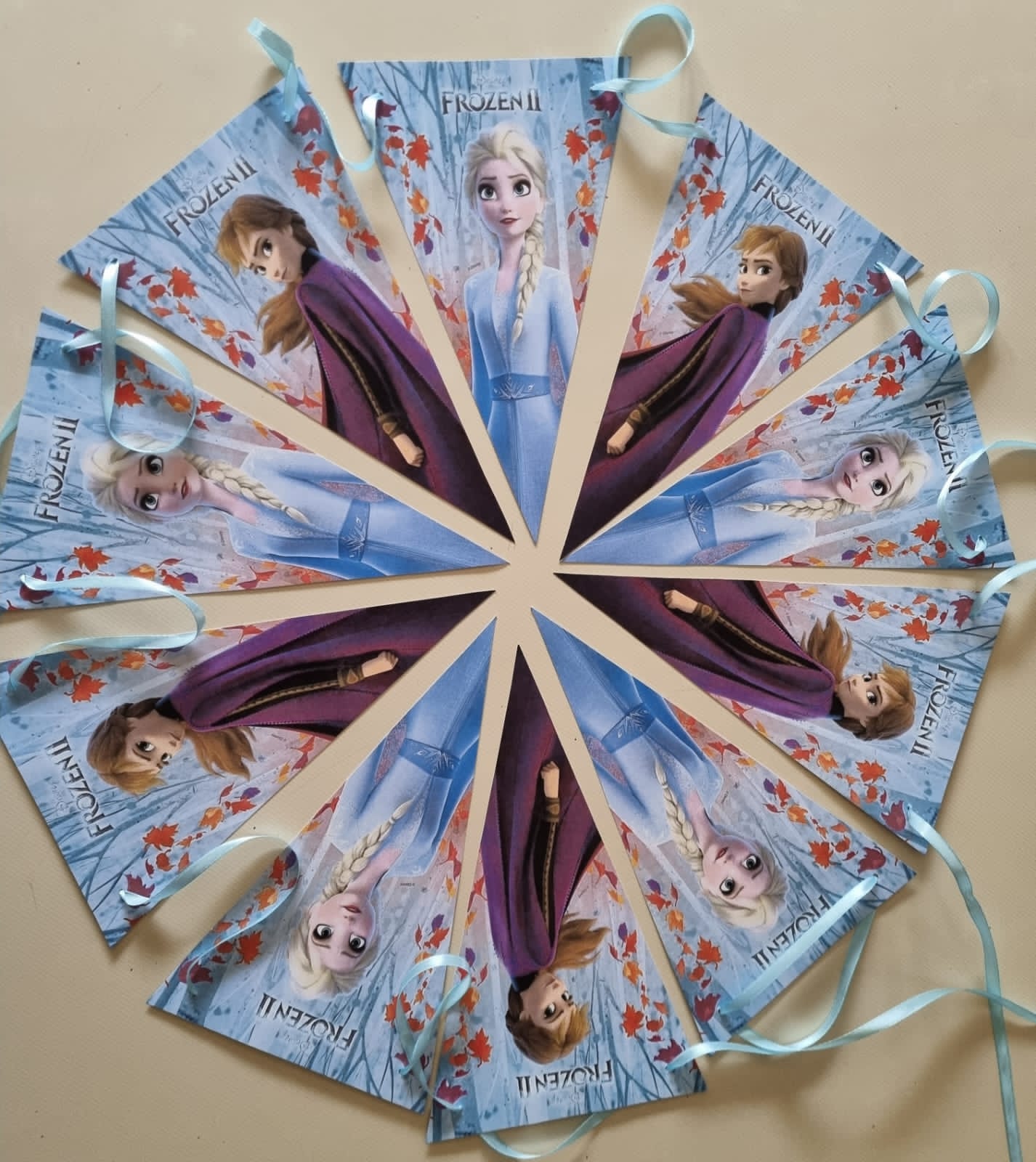 Frozen 2 flag banner. Vintage cardboard flag banner. Measures 3 meter long. Great décor item. Already strung, simply fold open and display on a wall or gate.