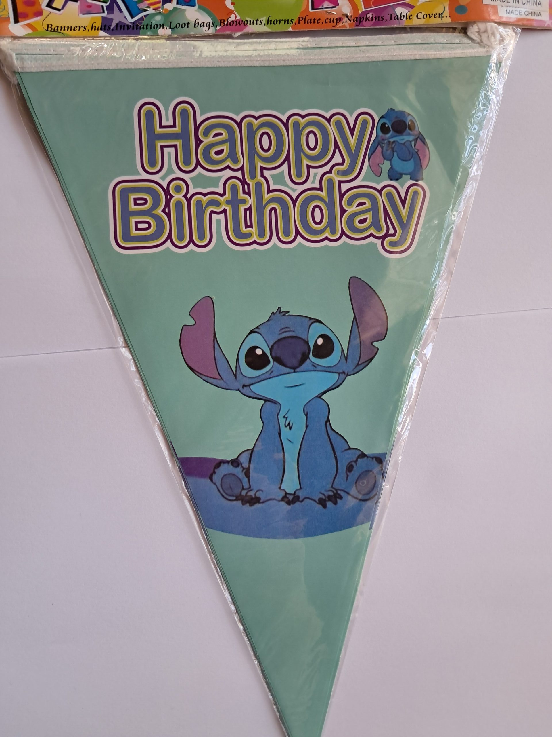 Stitch theme paper flag banner. Paper flag banner. Approximately 2 meter long. Great décor item with a Lilo and stitch theme party.