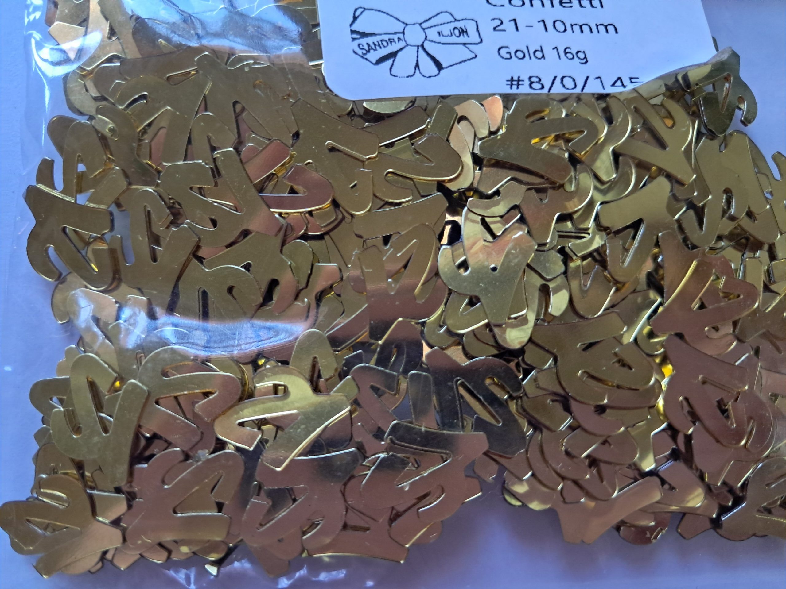 21st Confetti gold 10mm. 16 Gram packet of confetti. Beautiful gold coloured number 21’s. Perfect for a birthday or anniversary.  Scatter on the tables.
