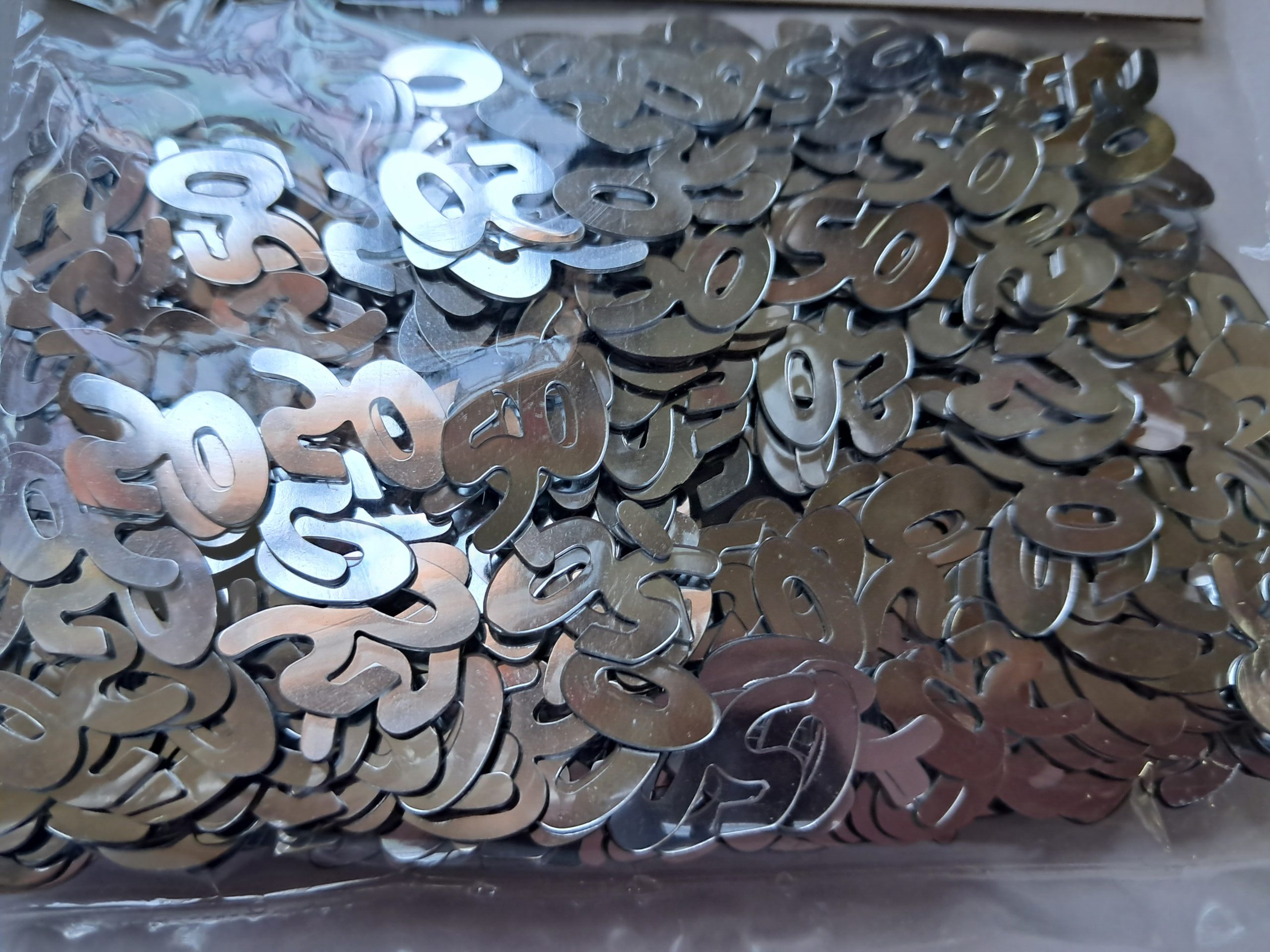 50th Silver table confetti. 10 mm in size, 16 gram packet. Number 50th confetti. Great to scatter on the tables for a 50th birthday or anniversary.