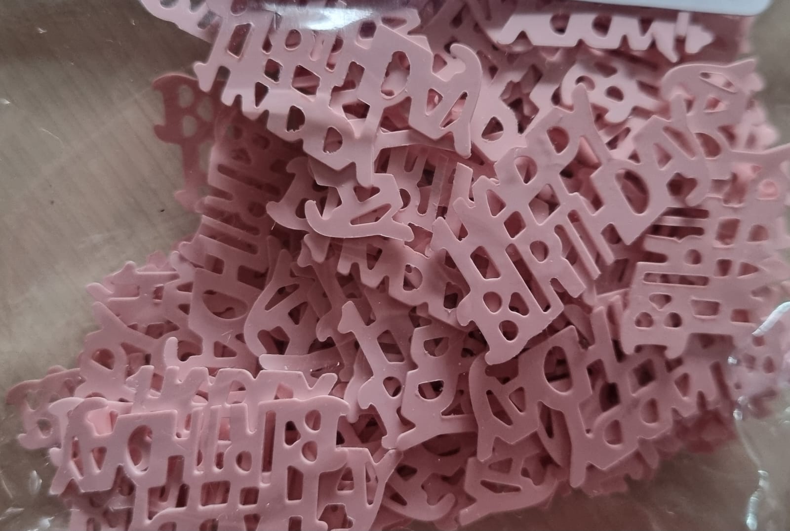 Pink happy birthday confetti. 16 Gram packet. Scatter on the table. Great décor item. Perfect with a princess, Minnie mouse, unicorn or ballet party.