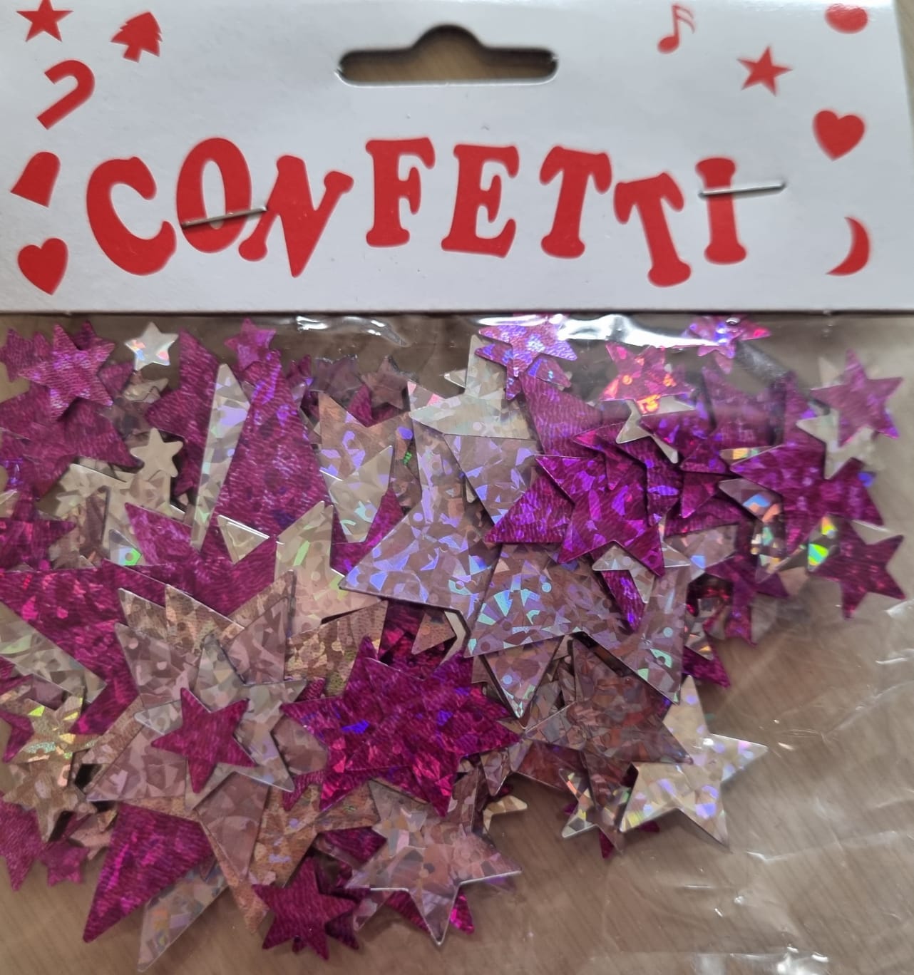 Pink holographic star mixed confetti. Scatter on the table or floor. Great with a galaxy, Barbie, disco or denim and diamond party.