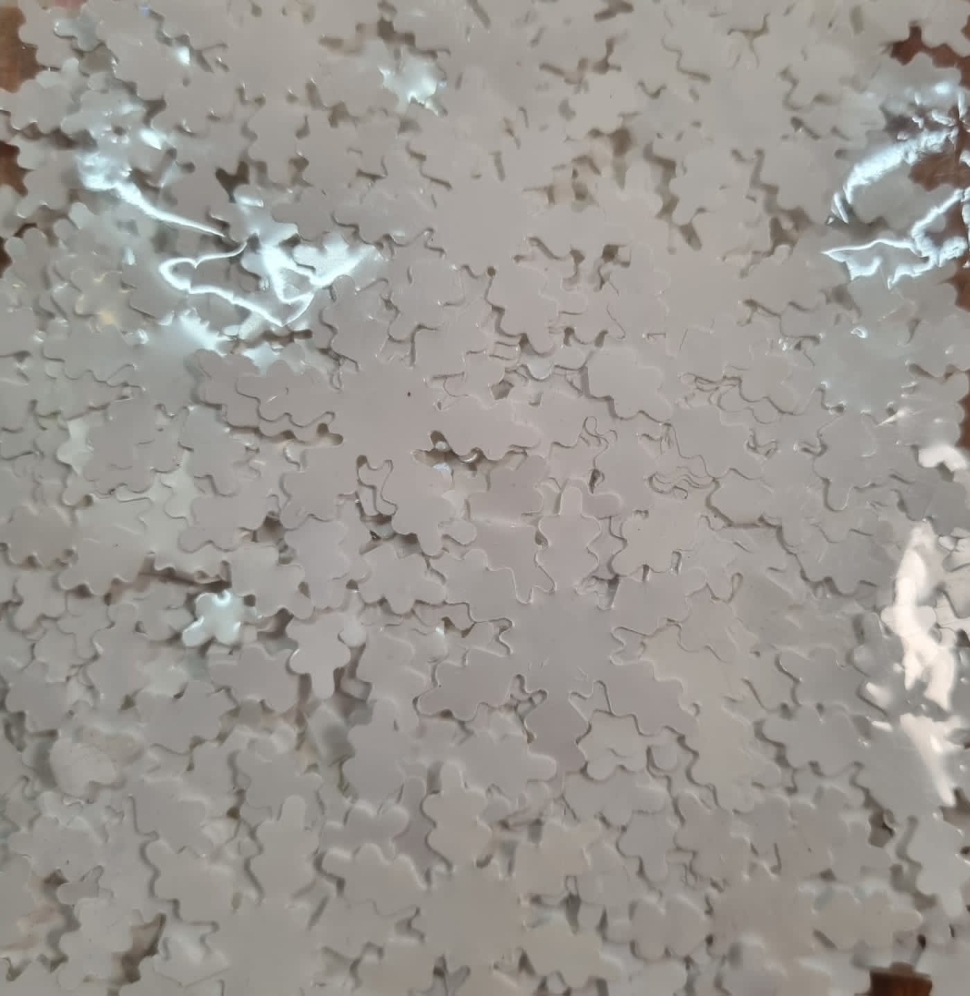 White paper snowflake confetti 20 gram. Scatter on your snowflake or frozen themed party or add into a clear latex or bobo balloons. Perfect with a snow, frozen, icy, winter wonderland or seasons themed party.