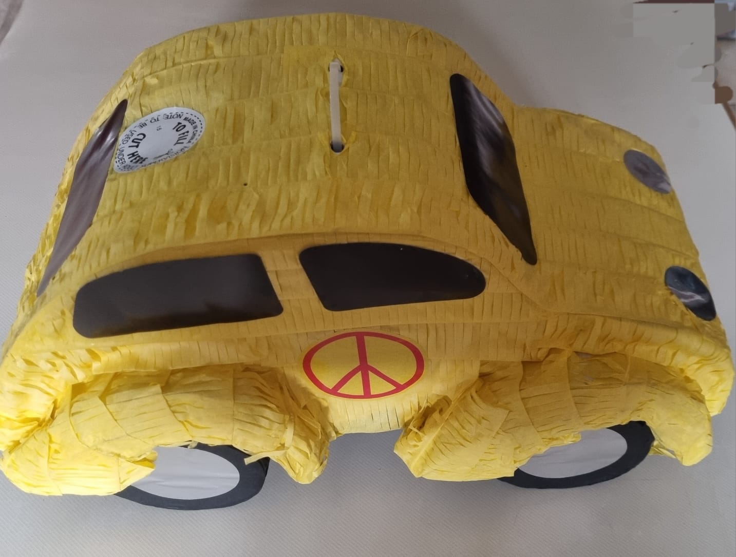 3d Car shaped beetle pinata- sold empty. Pinata sold empty, without a stick. Great party activity. Combine with a cars, transport, transformers or 60’s Hippy theme party.