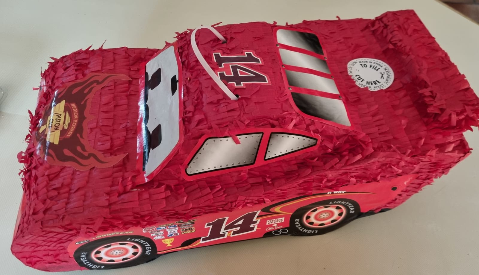 Red Car 3d piñata. Piñata sold empty. Great game for the kids. Fill with candy and let the fun begin. Stick and sweets not included. Perfect with a racing, race car, transport or Mc queen cars theme party. Sold empty.