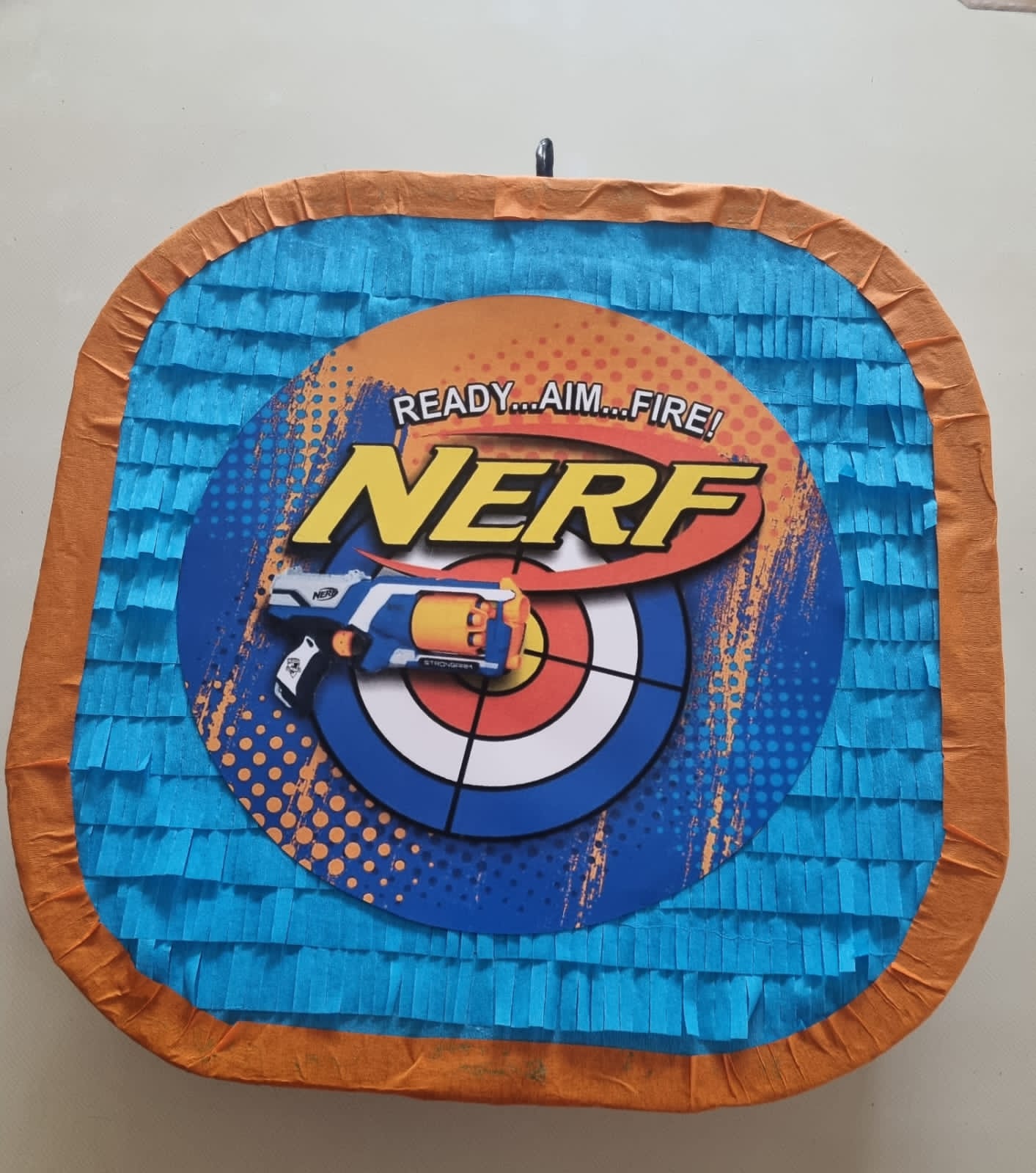 NERF themed piñata. Piñata sold empty, no stick included. Great fun for all. Add sweets and toys and let the fun begin.