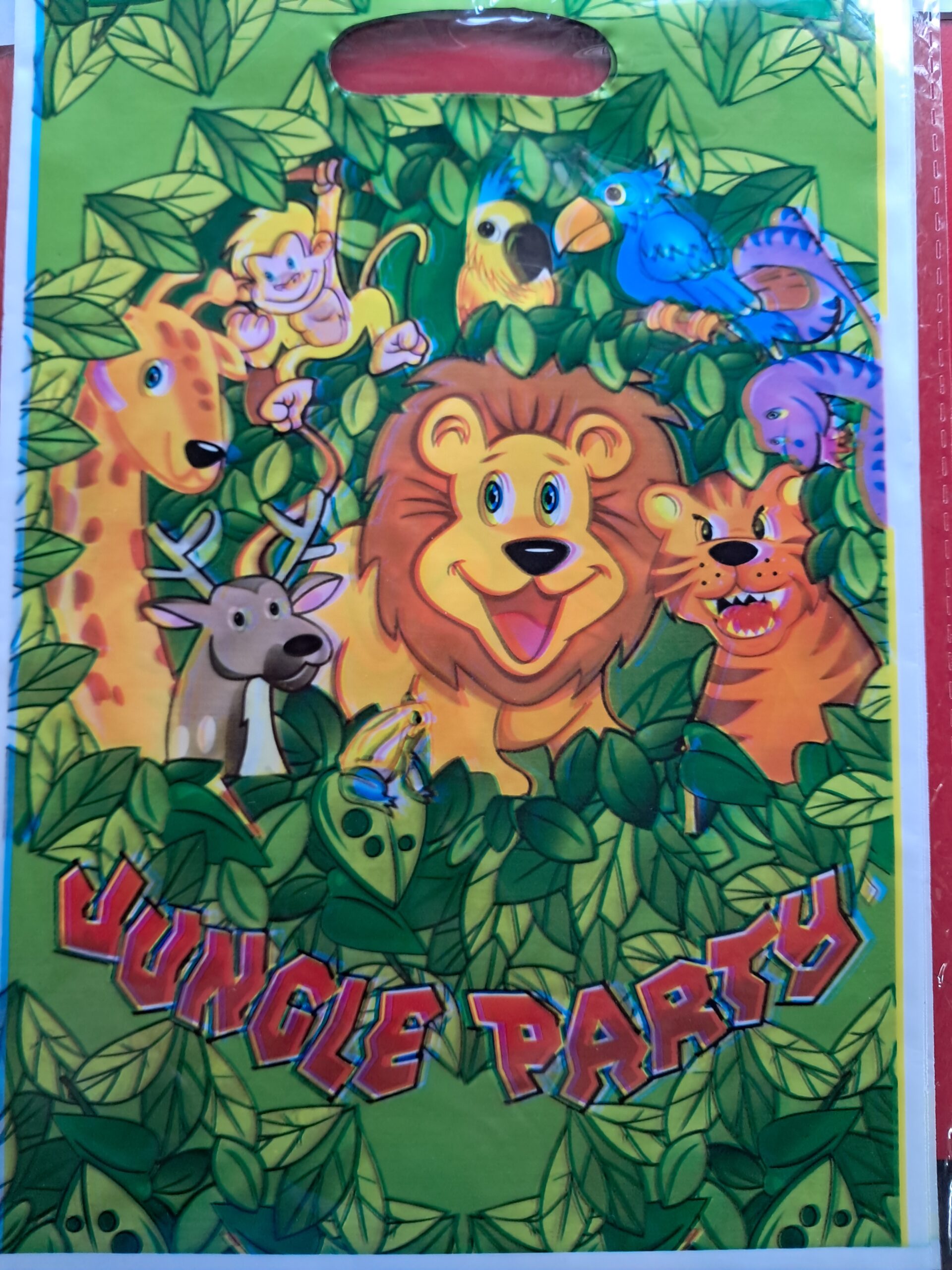 Jungle party loot bags 10’s. 10 Loot bags per pack. Great to fill with sweets, candy floss or popcorn. Perfect addition to a jungle, safari, wild animal or wild one party. Bag measures 16 x 25 cm.