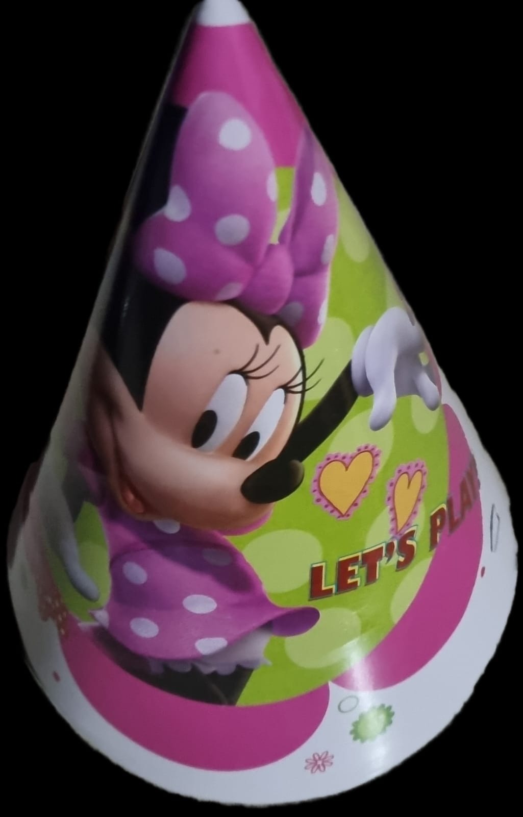 Minnie mouse cone hats pink 10’s. 10 Cone hats per pack. Great dress up item with a pink Minnie mouse theme.
