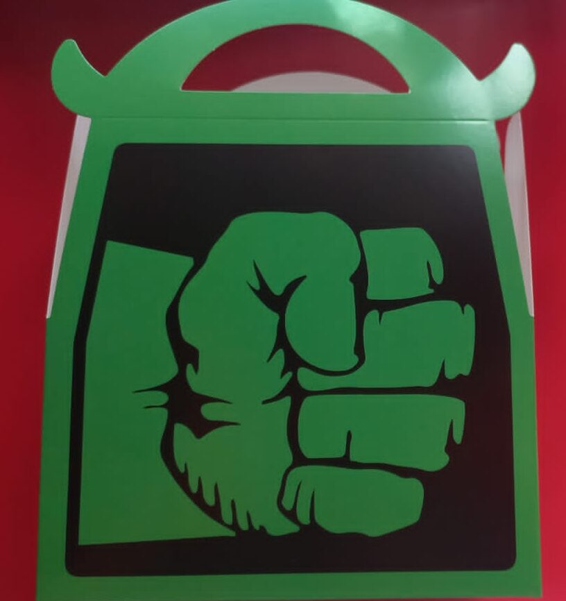 Hulk party boxes 10’s. 10 Cardboard handle boxes per pack. Measures 16 x 9 x 9 cm. Perfect for sweets, treats or snacks. Great addition to a Hulk, super hero or Avengers theme party.
