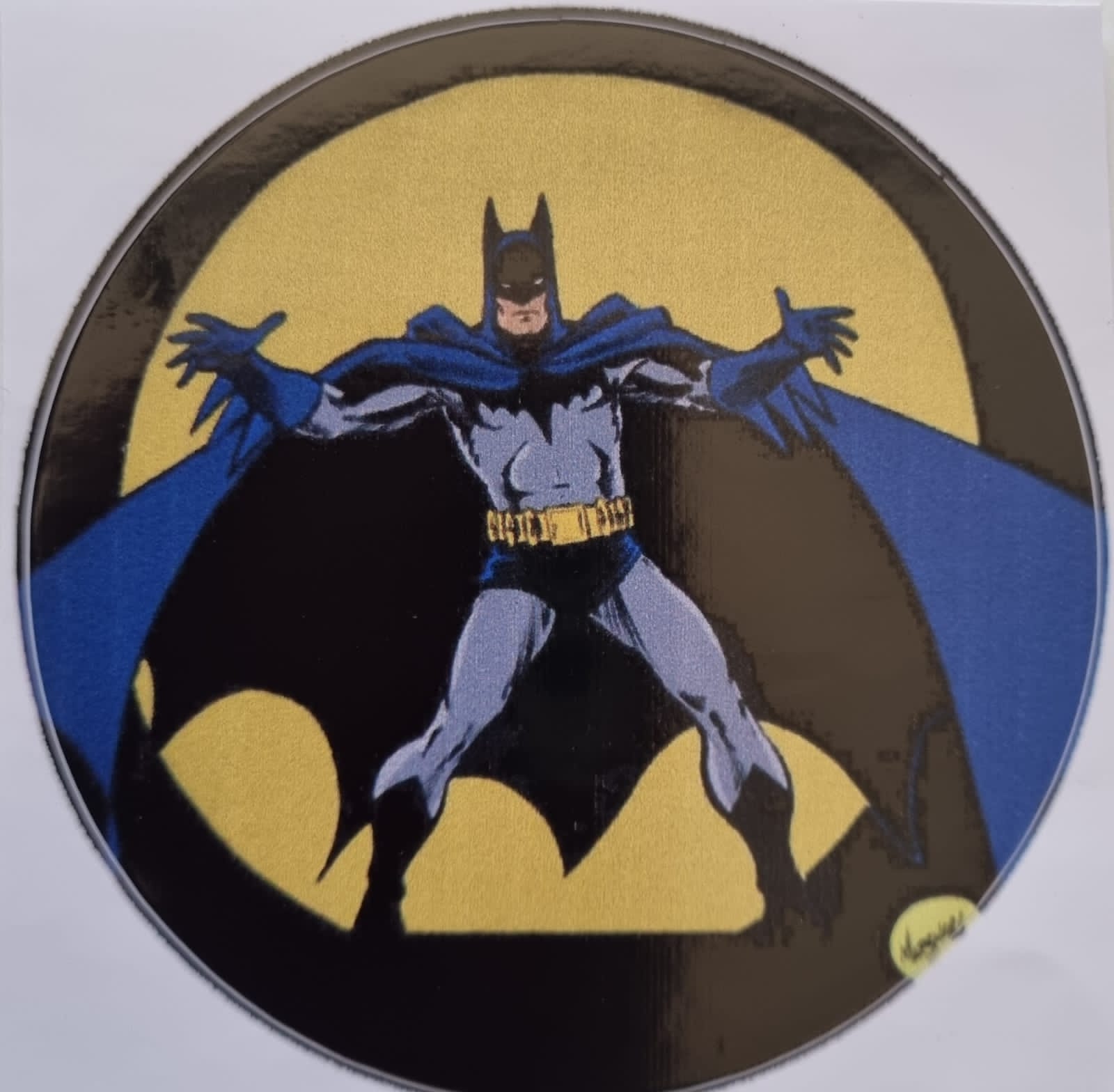 Batman stickers round. 10 Stickers per pack. 8 cm in diameter. Fits perfectly inside a paper plate or on top of a cup.