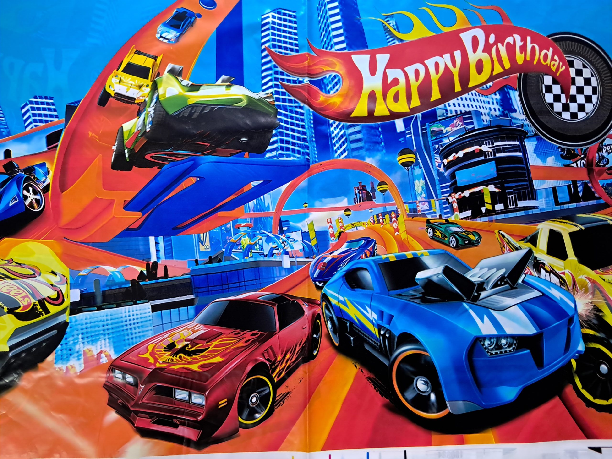 Hot wheels plastic table cover. 108 x 180cm. Cover your party table. Disposable plastic table cover. Perfect with a Hot wheels theme party.