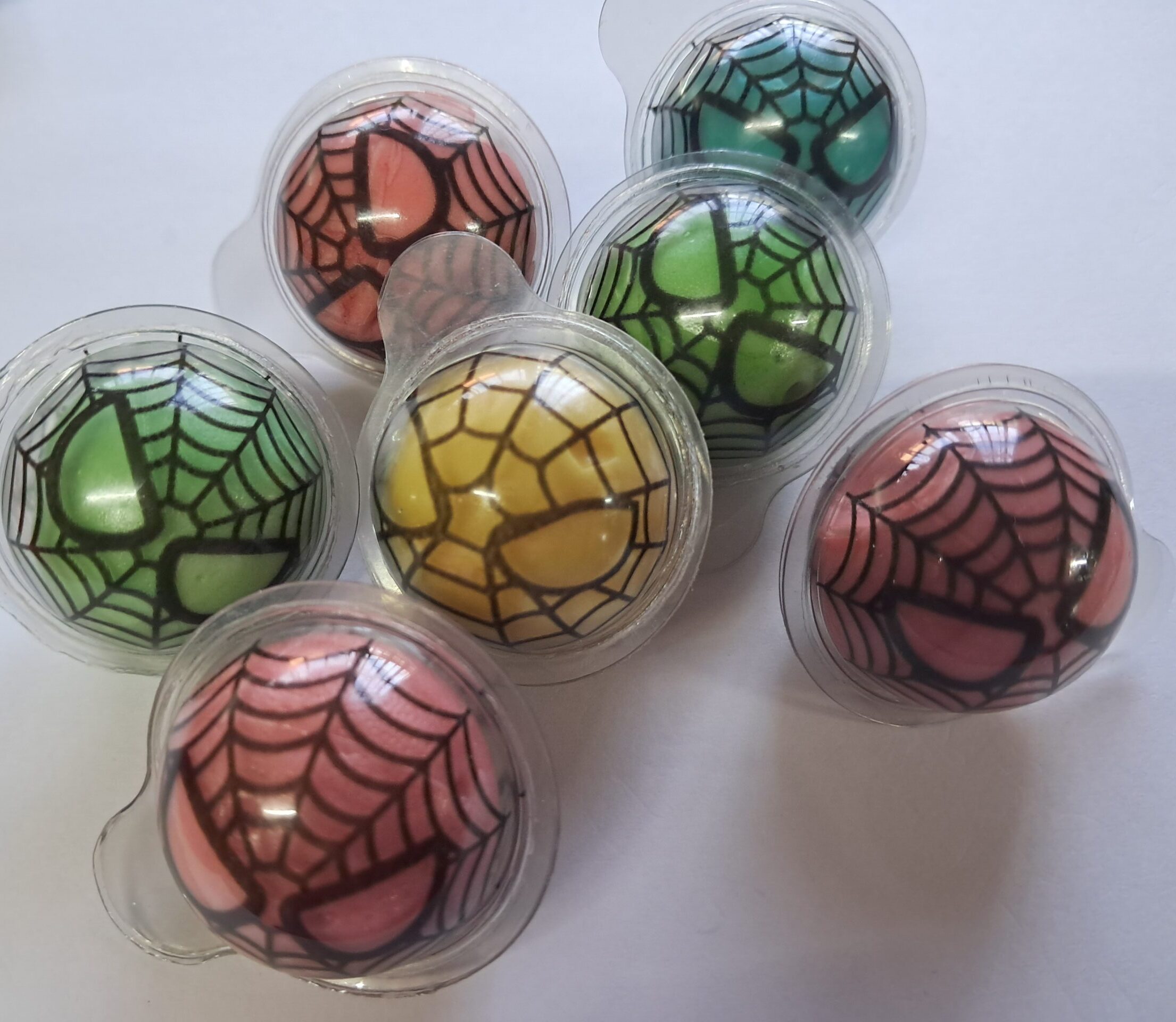 Spiderman jelo sweets 10’s. Assorted colours sweets per pack. 10 Per pack. Jelly type of sweet inside plastic containers. Great with a spiderman or super hero theme party.