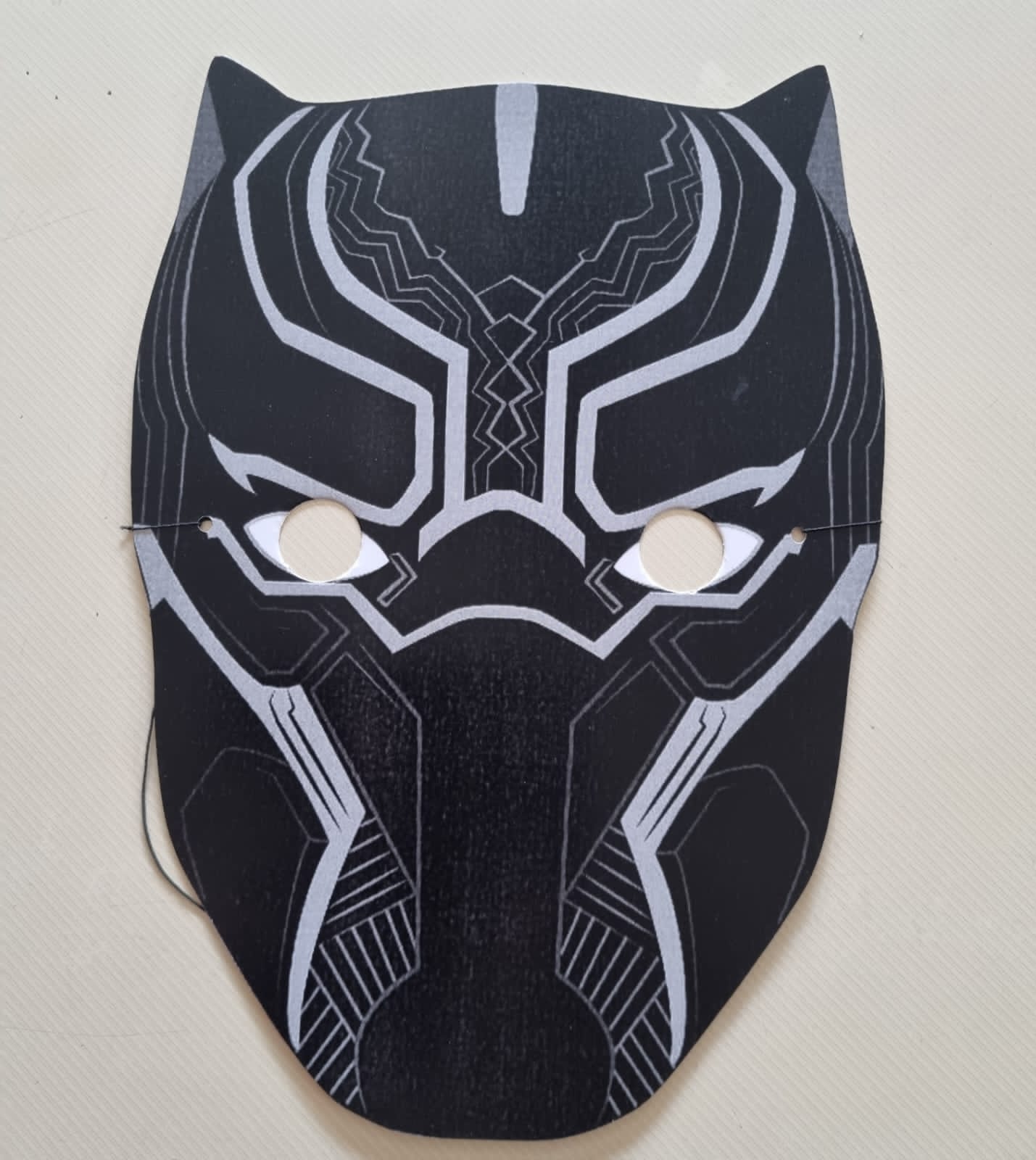 Black panther cardboard masks 6’s. 6 Cardboard masks per pack. Great dress up item for an Avengers or Black panther party. Also works great to display on your party pack.