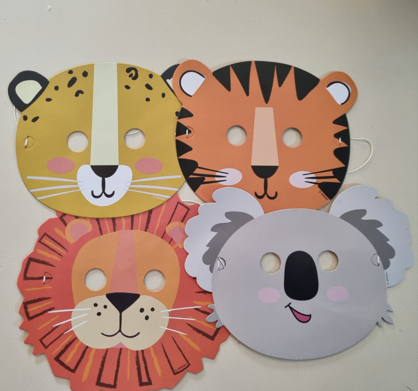 Jungle animal party masks 8’s. 8 Cardboard masks per pack. Perfect as dress up item with a jungle, safari, wild animal or wild one theme party, 8 Assorted animals per pack.