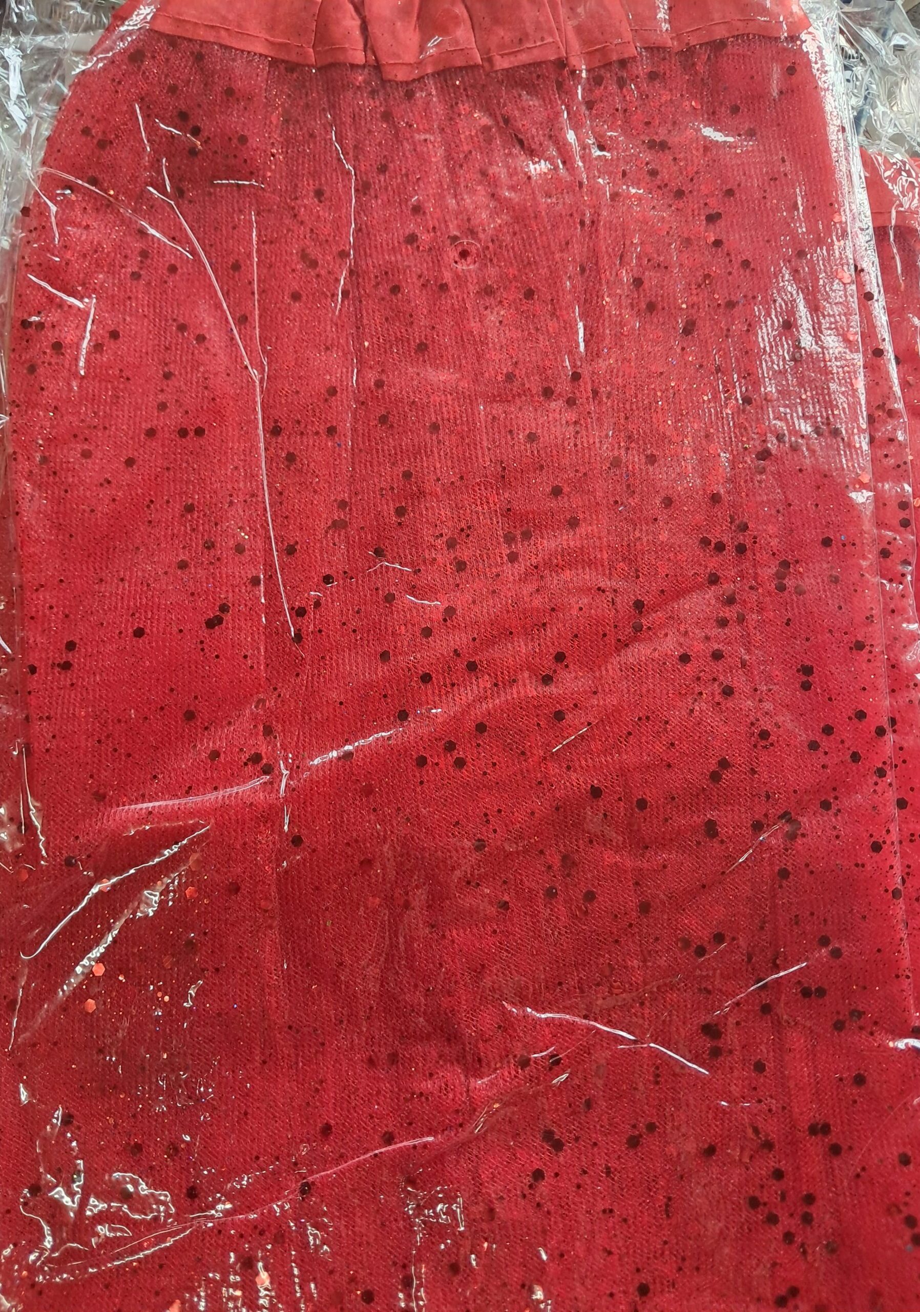 Red material tutu 38cm. Great dress up item for a fairy, butterfly, elf or Christmas theme dress up.