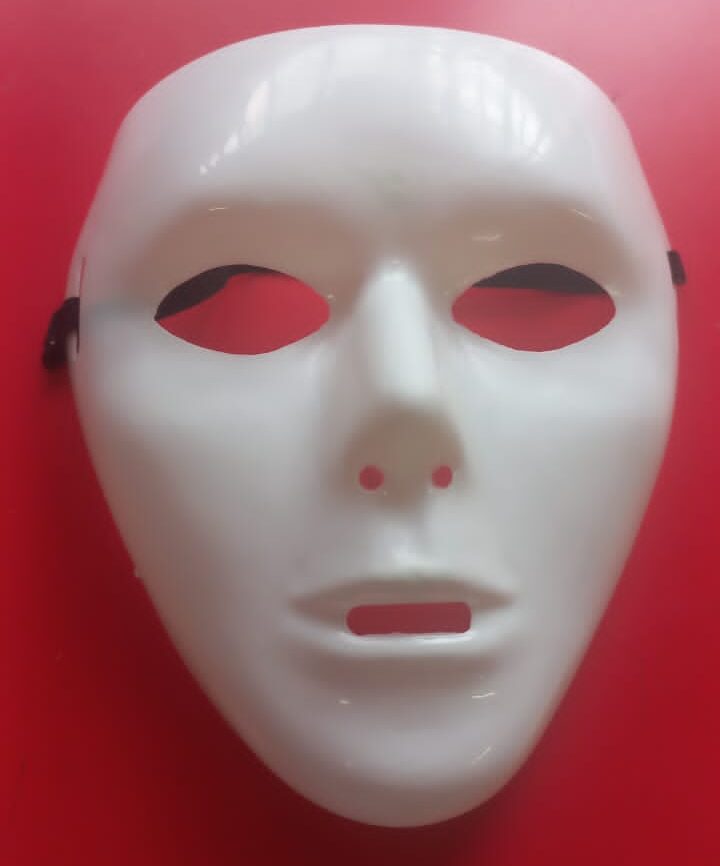 White plastic face mask single. Perfect dress up item for a masked ball or dress up theme party.